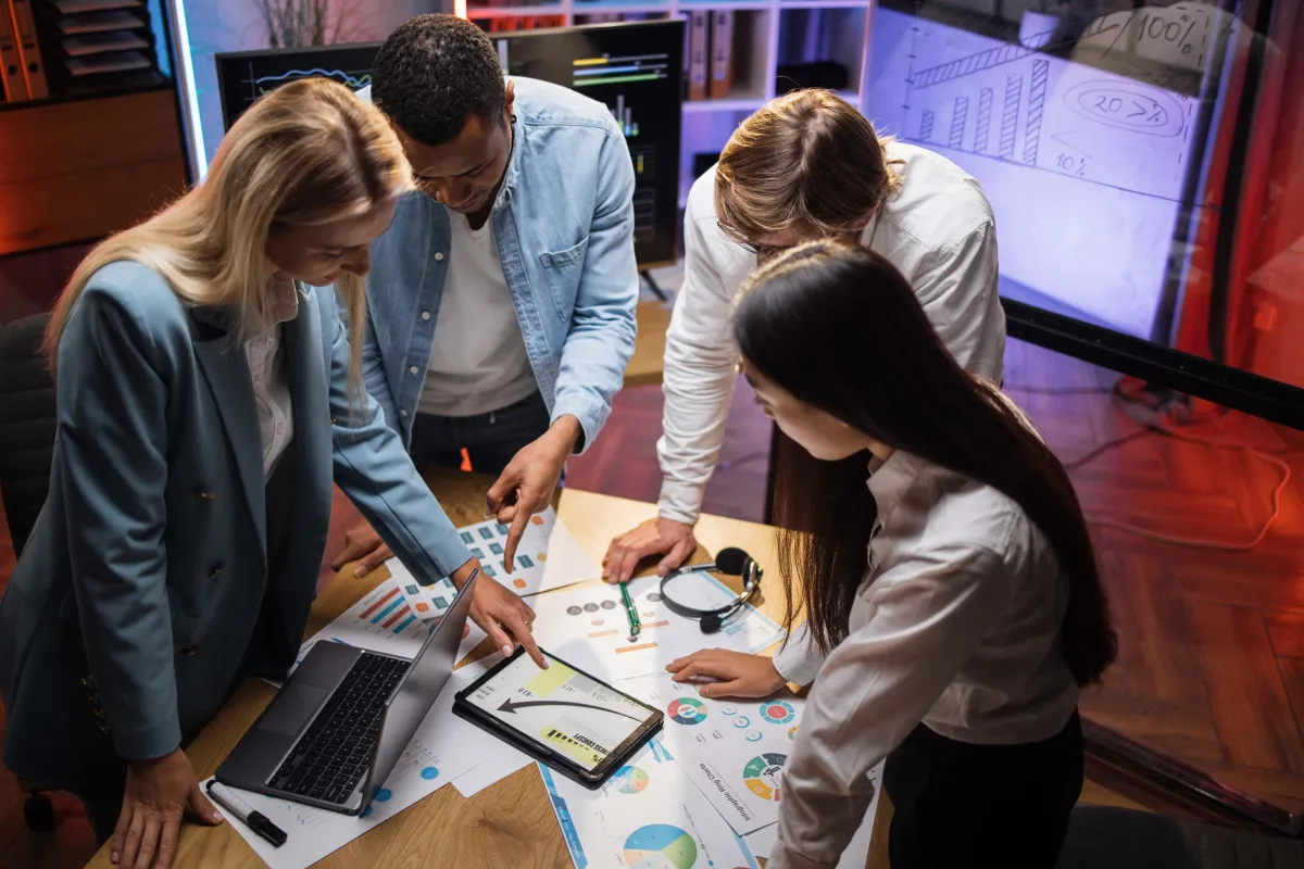 Profiles of key team members with professional photos and brief bios highlighting their expertise and contributions